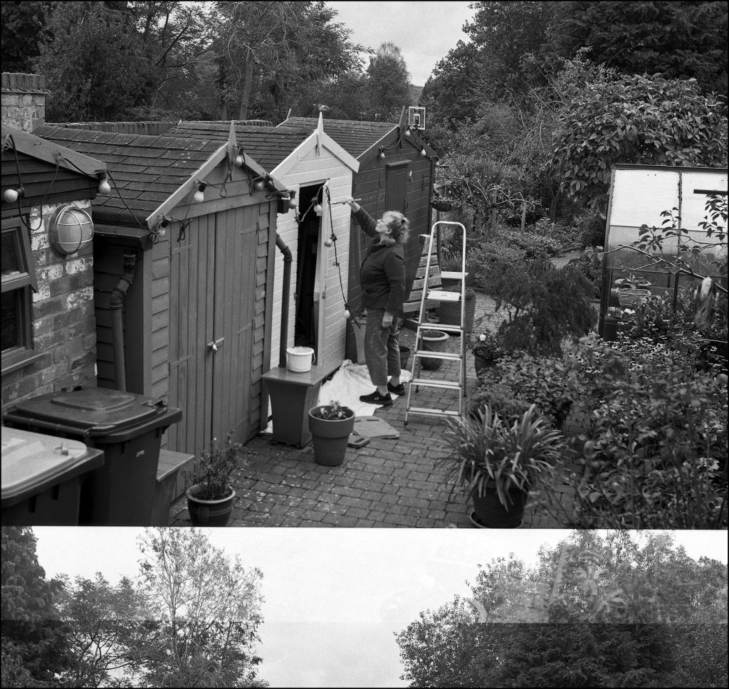 Making a rare trip away from our Covid isolation we visited a park which has a small wood yard for children to choose their materials to construct a den. The light was excellent and I returned home satisfied and was further heartened when my film loaded quite smoothly into the developing tank. All went well with the processing until I poured the stop bath back into its container and was alarmed by the film reel emerging from the tank only to disappear under the work top. I threw myself towards the light switch before spending quite a few minutes looking for the errant reel. After fixing, I was partially relieved that the film wasn’t totally fogged and I chose a frame that seemed to have almost escaped unscathed.